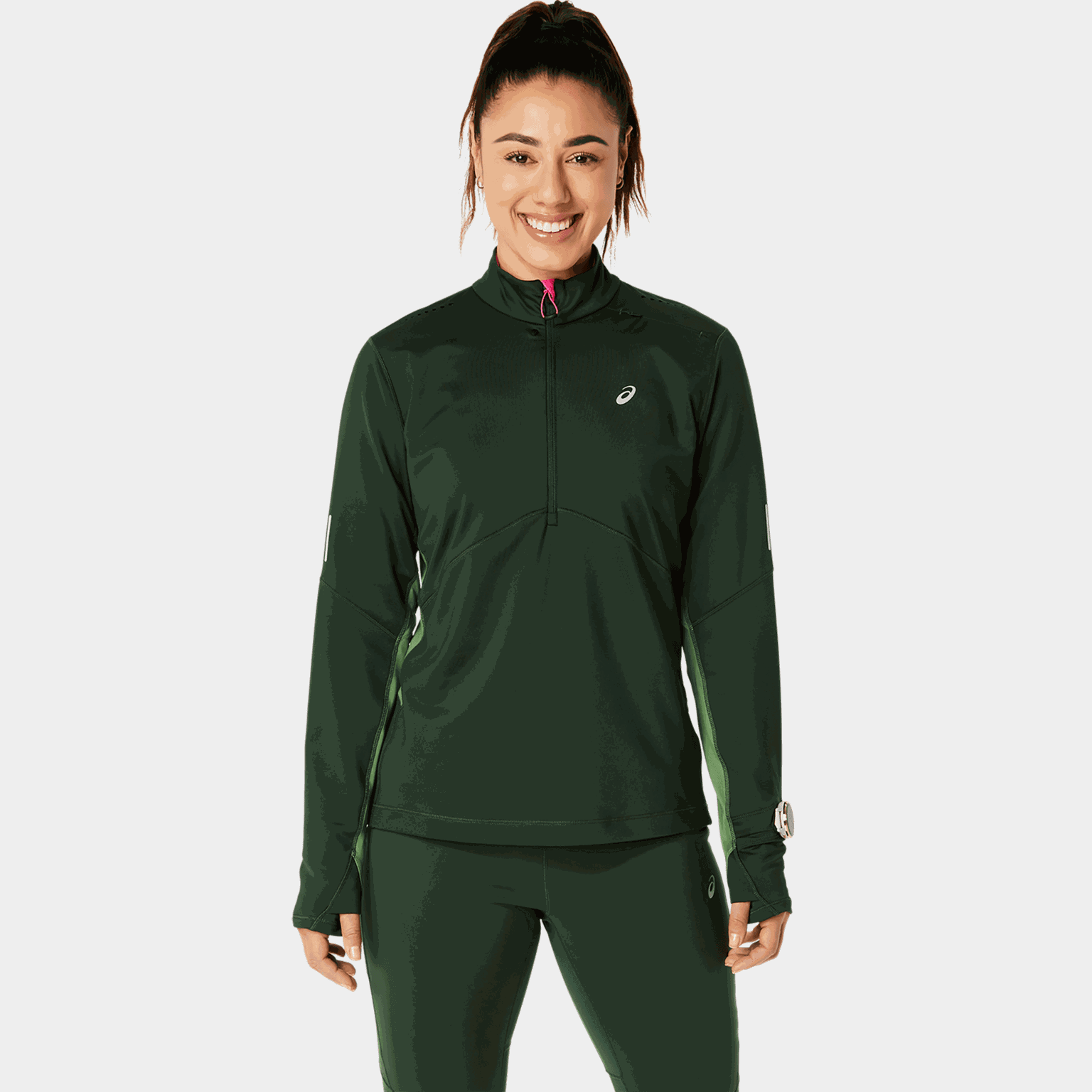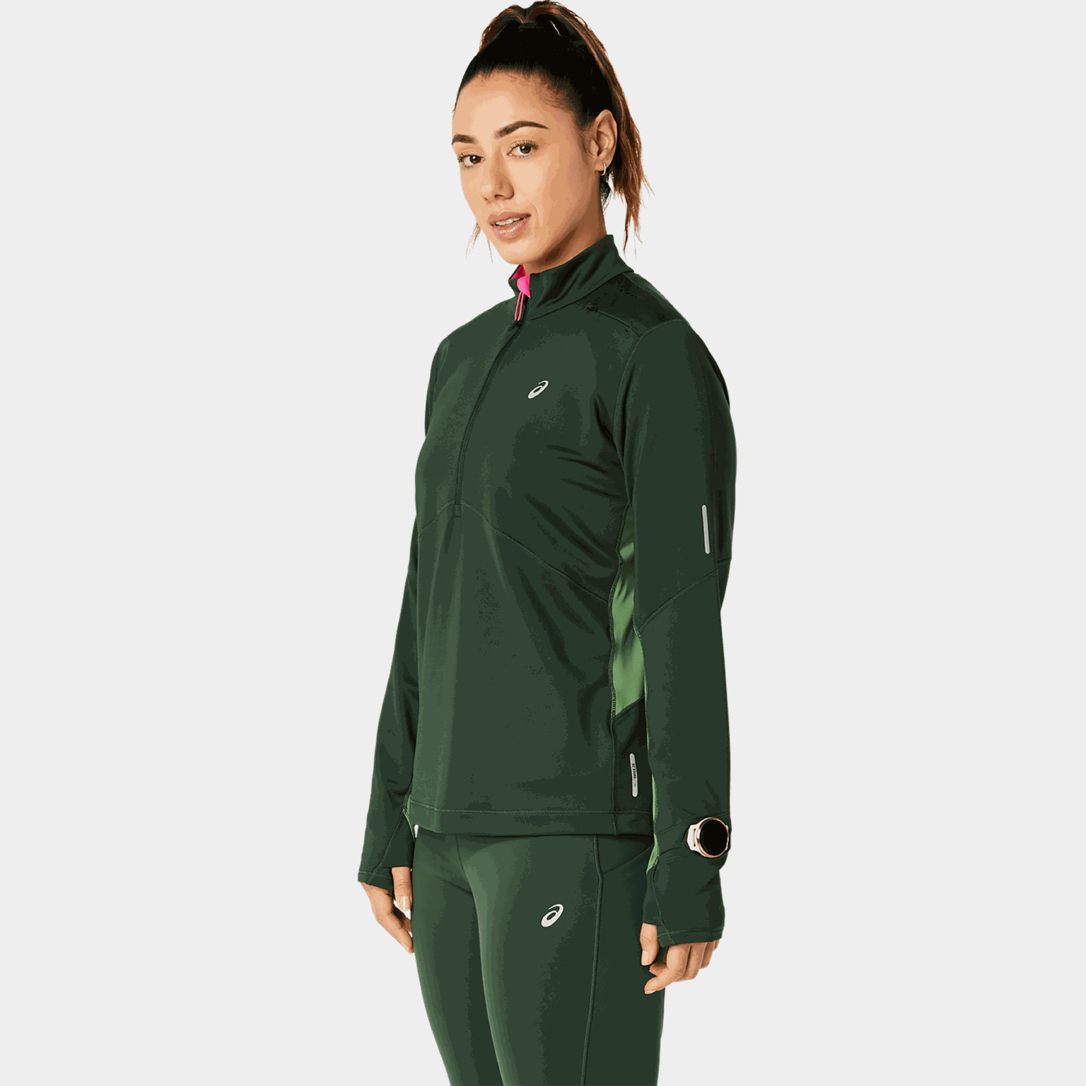 Med tommelhull holder genseren seg på plass og holder hendene dine varme på kalde dager. Treningsgenseren har et smartklokke-vindu for enkel tilgang til klokken.