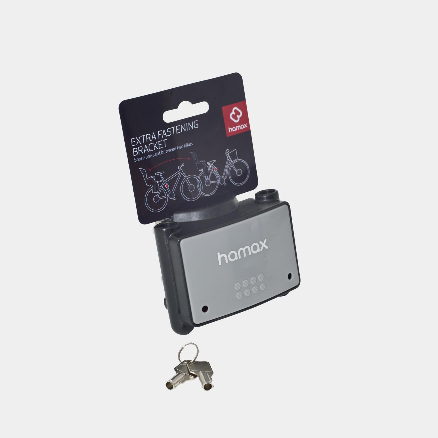 Hamax Safety System. Ekstra låsbar festebrakett for sykkel nr. 2. slik at barnesykkelsetet enkelt kan benyttes på flere sykler. Nå i ny, lettere og mer moderne versjon.Egenskaper:- Med lås for å forhindre tyveri av sykkelsetet- Passer nesten alle typer sykler med rammediametre mellom 28-40 mm- Fjærbelastet lås- Grønne indikatorer vises når setebøylen er riktig montert- Sikrer jevn fordeling av belastning på rammerøret, for ikke å forårsake deformasjon- Enkel montering med kun fire skruer- Kan plasseres mellom kabelfester for å unngå konflikt med girkabelen på rammerøret- Quick release system: Trykk på forsiden av braketten for å koble setet fra sykkelen- Vekt: 0,40 kg- Materiale: PP