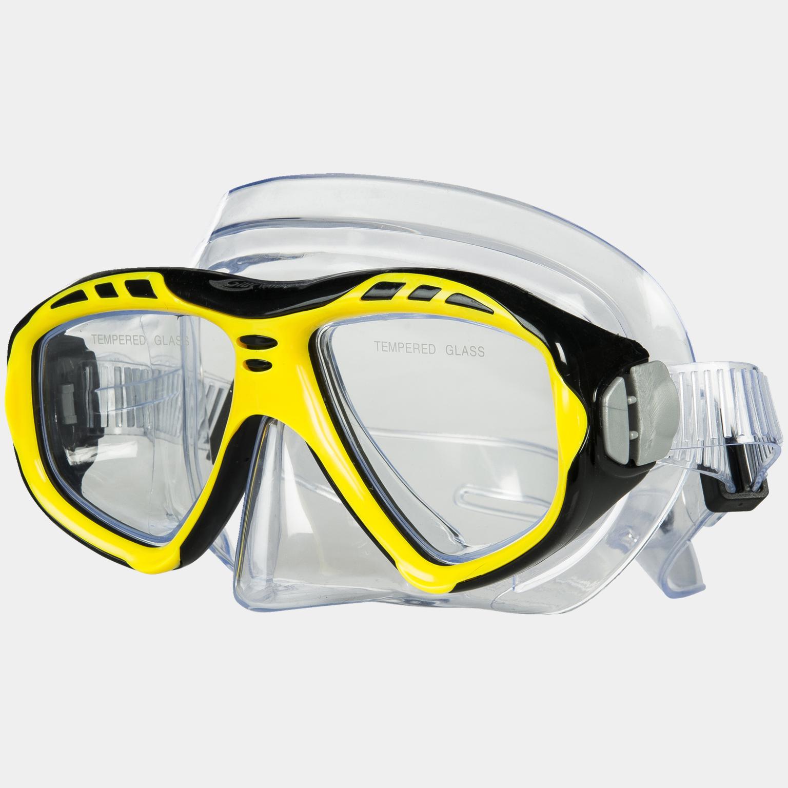 Dykkermaske med temperert glass. Innsiden av masken er produsert i slitesterkt PVC-materiale. Passer ypperlig til snorkling i hav.